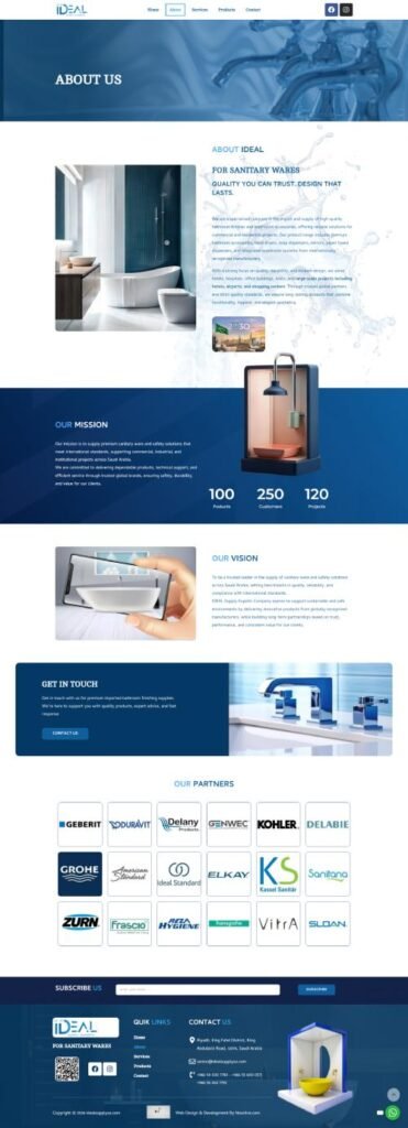 A modern, professional visual style was implemented to support the brand’s promise of “Quality You Can Trust. Design That Lasts.” The website effectively communicates the company’s ability to serve hotels, hospitals, office buildings, malls, airports, and large-scale projects, reinforcing credibility and positioning the brand as a reliable partner for high-end washroom solutions.