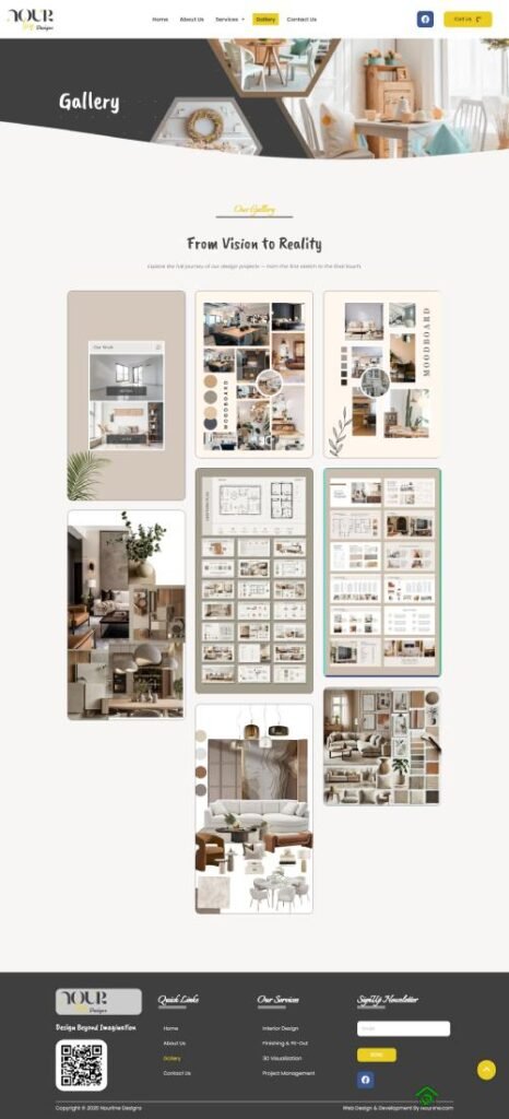 Nourline Designs website was created to reflect the brand’s creative vision in interior design by showcasing its ability to transform spaces into inspiring and functional environments the project focused on presenting the company’s design philosophy expertise and full service approach from concept development and 3D visualization to complete project execution through an elegant visual style smooth user experience and content that highlights creativity attention to detail and lifestyle driven design solutions