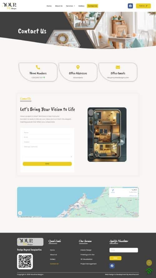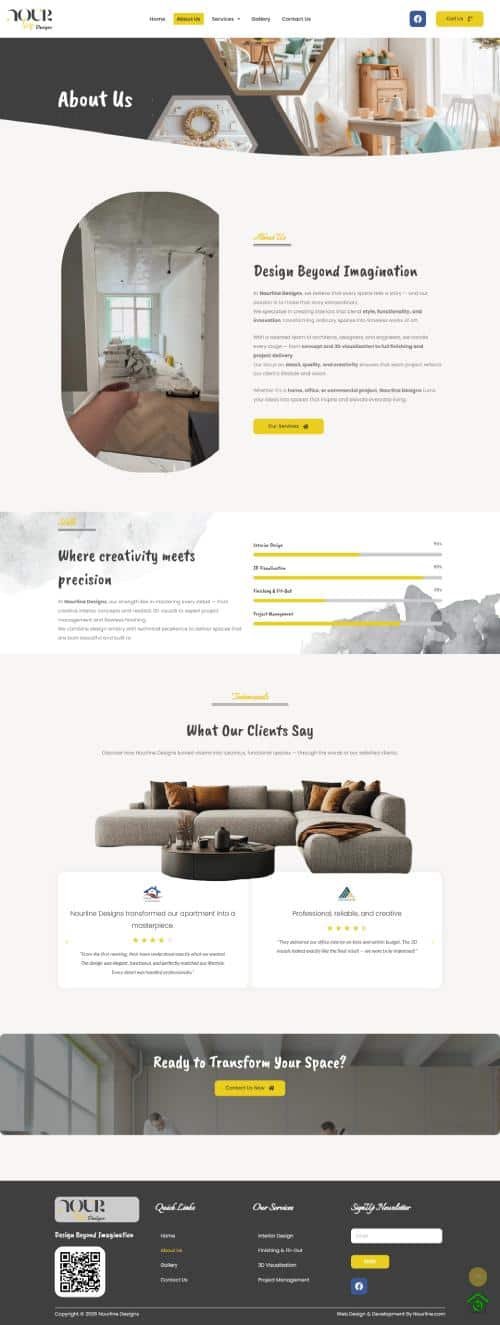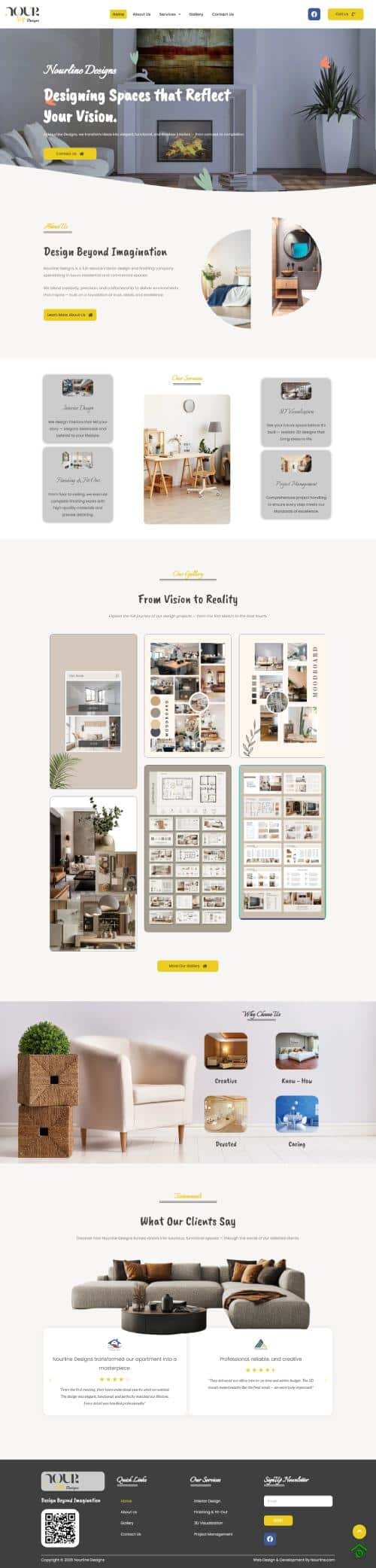 Nourline Designs website was created to reflect the brand’s creative vision in interior design by showcasing its ability to transform spaces into inspiring and functional environments the project focused on presenting the company’s design philosophy expertise and full service approach from concept development and 3D visualization to complete project execution through an elegant visual style smooth user experience and content that highlights creativity attention to detail and lifestyle driven design solutions